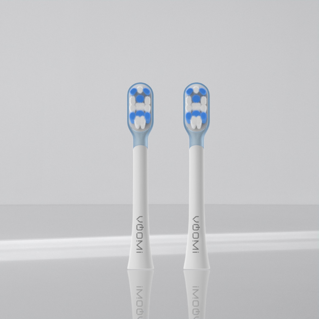 Końcówki do szczoteczki Vibe 1S z antybakteryjnym włosiem DuPont i gumowanym tyłem. Delikatne, skuteczne i higieniczne — także do czyszczenia języka.