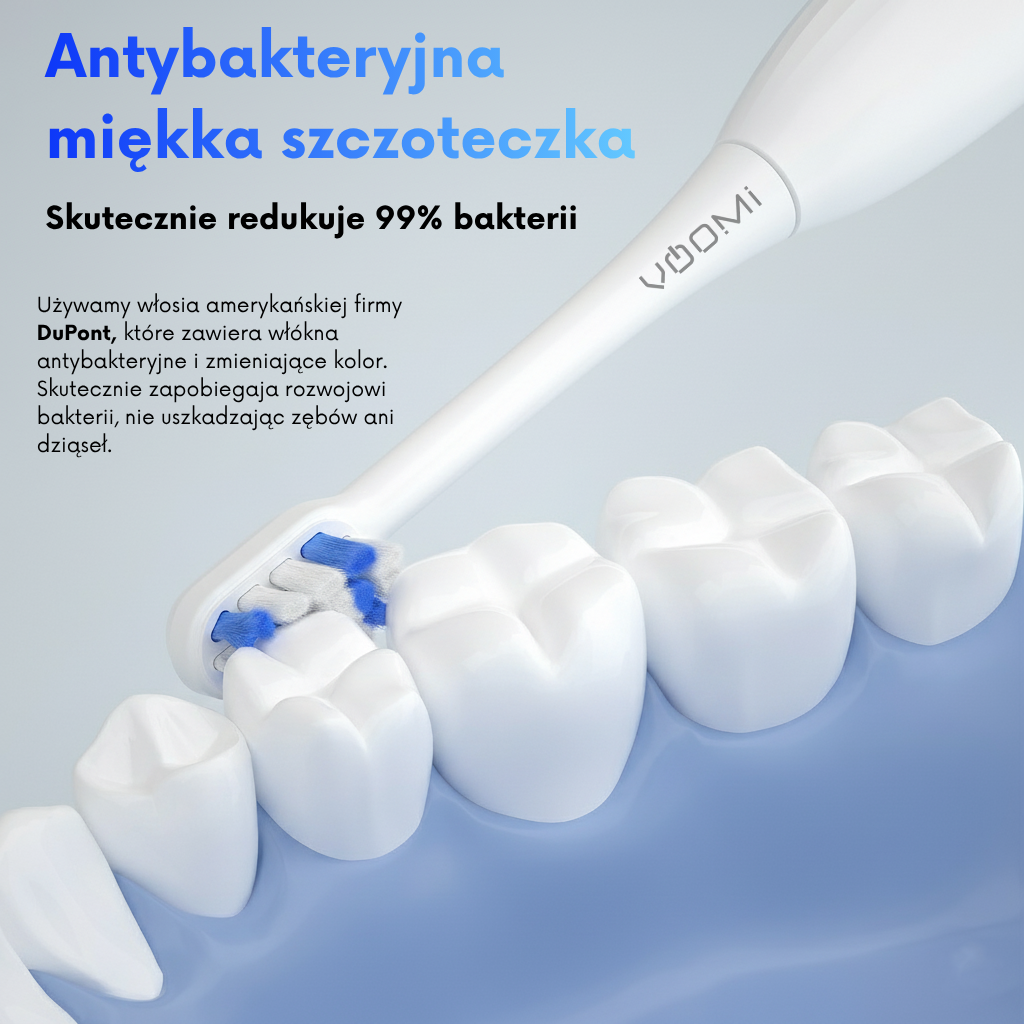 - Antybakteryjne Włosie: Główki szczoteczki są wyposażone w antybakteryjne, wysokiej jakości, zmieniające kolor włosie (informacja o zużyciu) w zestawie x2 wymienne główki. Włosie renomowanej firmy DuPont