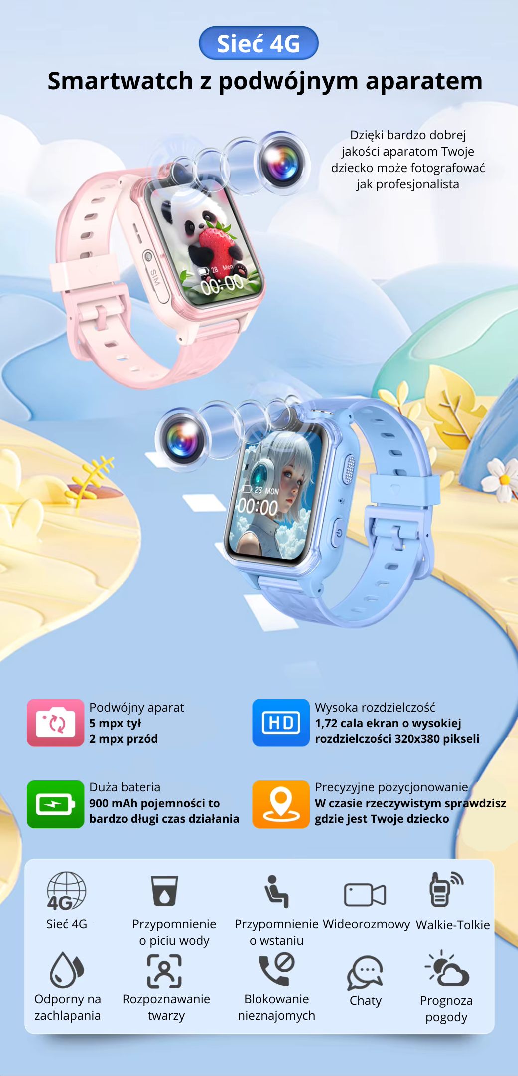 Smartwatch dla dzieci, który ma dwie kamery, Androida, lokalizację i potężną łączność 4G. Bezpieczny, inteligentny i gotowy na każdą przygodę.