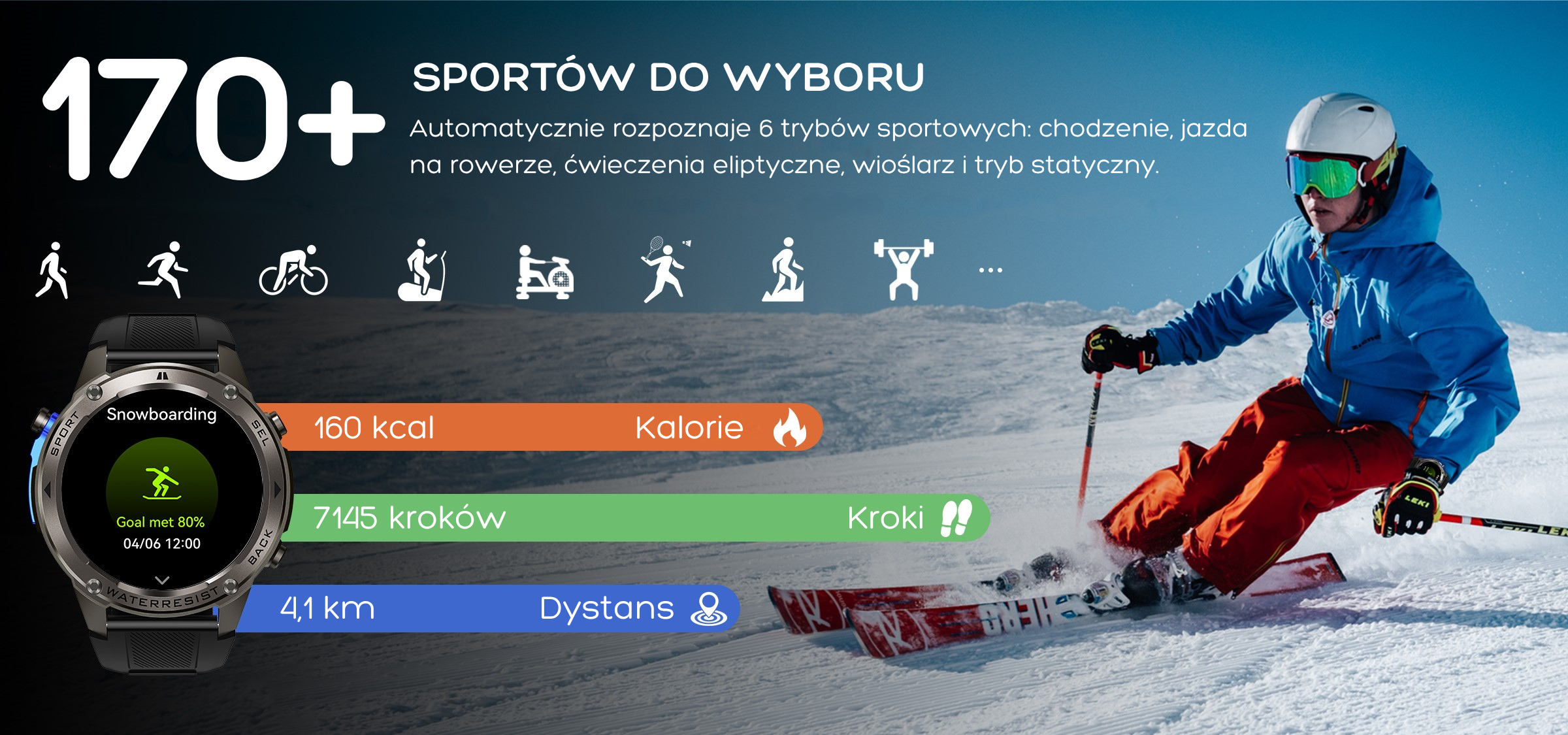 Ponad 170 trybów sportu: Od biegania po pływanie i trening siłowy.