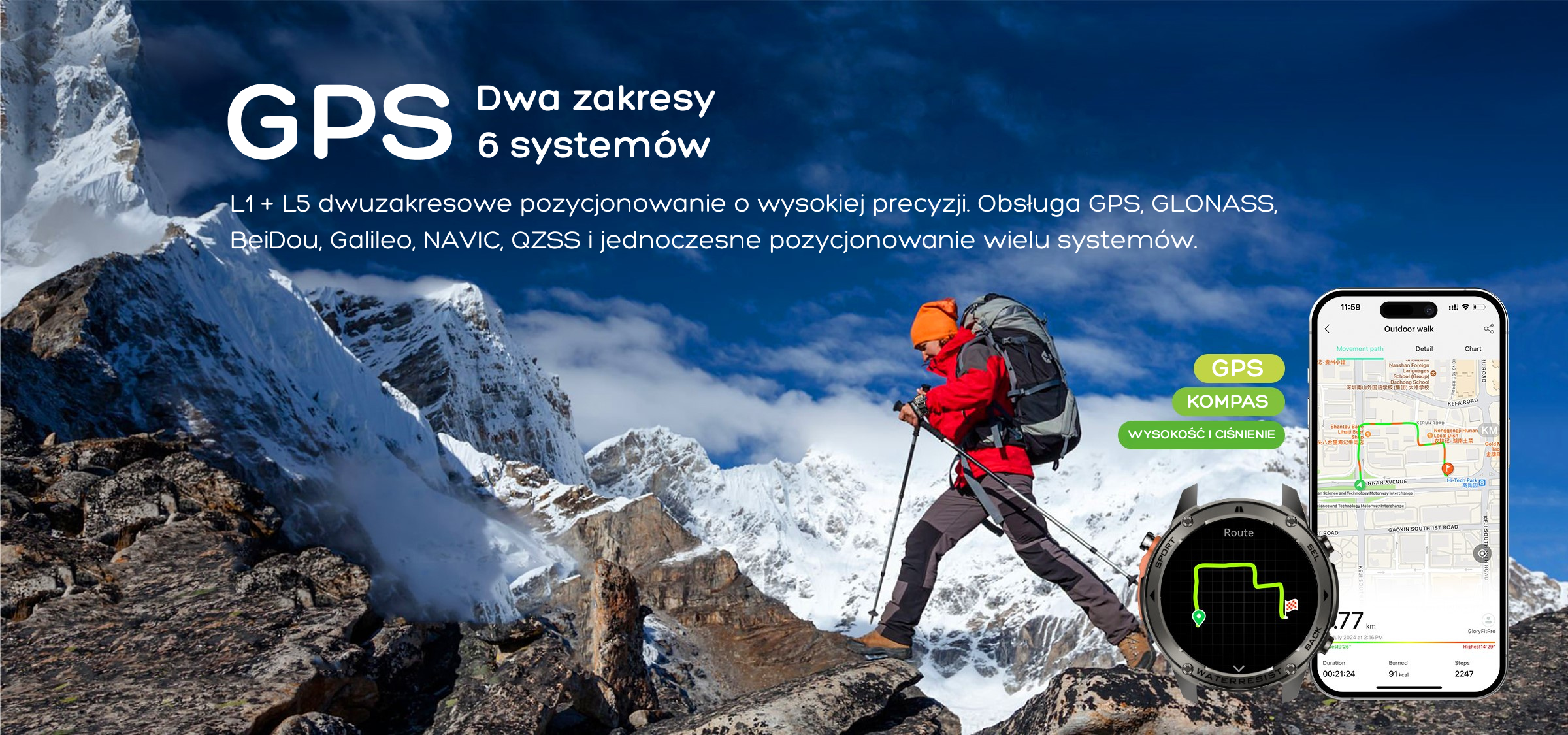 Zintegrowany GPS pozwala dokładnie śledzić trasę i tempo bez konieczności zabierania telefonu.