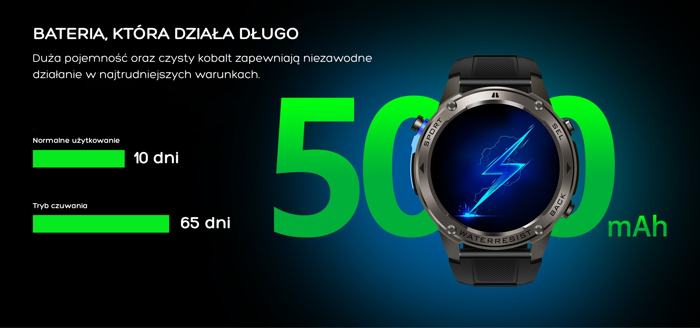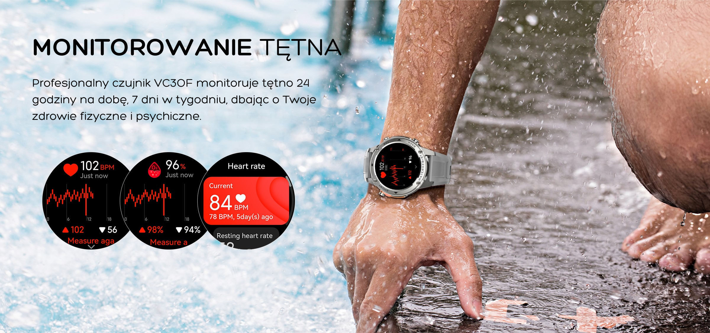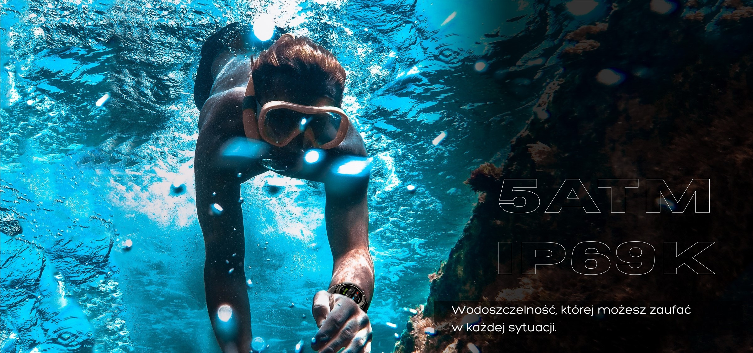 Wodoszczelność 5ATM: Idealny do pływania i intensywnych treningów.
